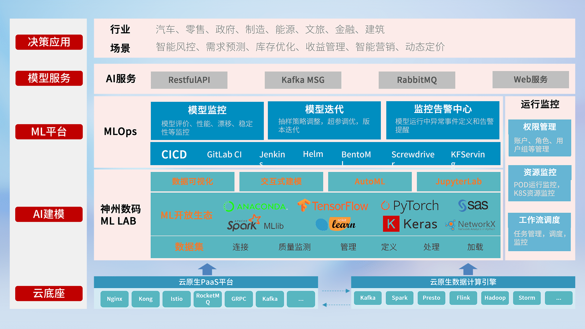 数据+模型双引擎驱动,,,面向智能服务场景,,快速灵活利用AI技术,,支持业务决策,,,助力企业智能化转型破局。。